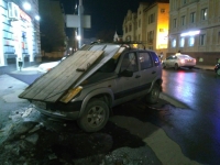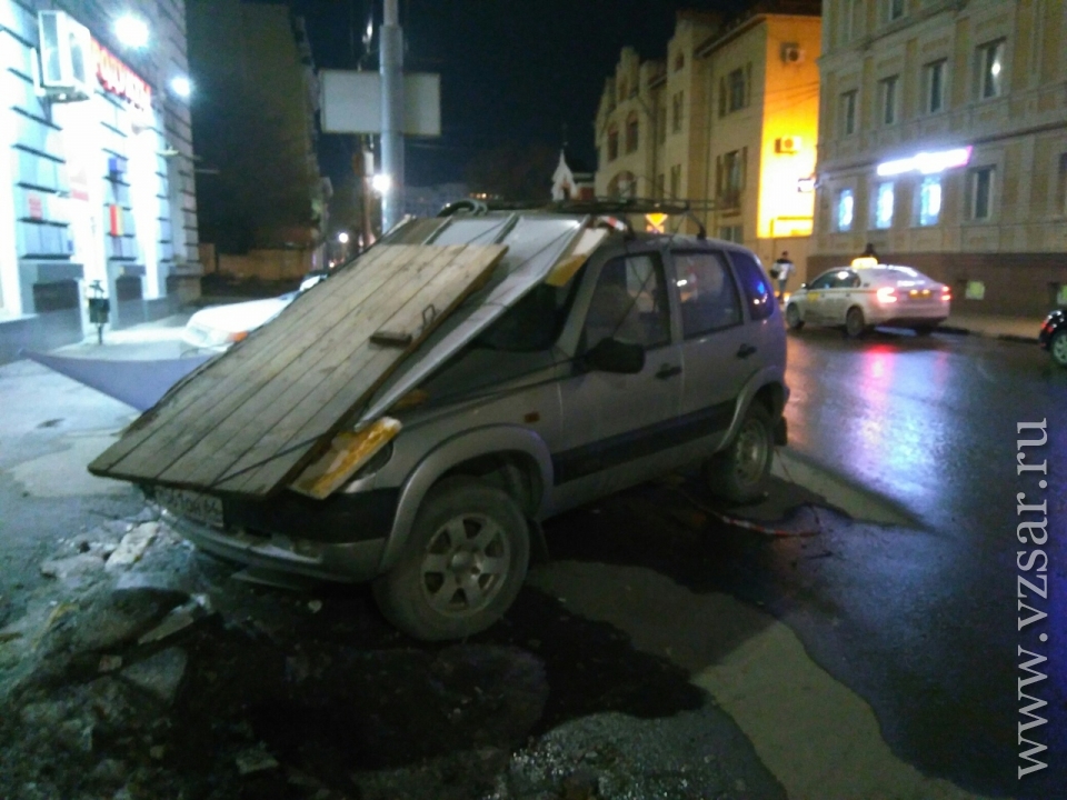 В центре Саратова, на улице Лермонтова (между Соляной и Первомайской), водитель обезопасил свою "Ниву Шевроле" досками, пластиком и металлом. Соответствующие фотографии появились в группе "Саратов онлайн".
