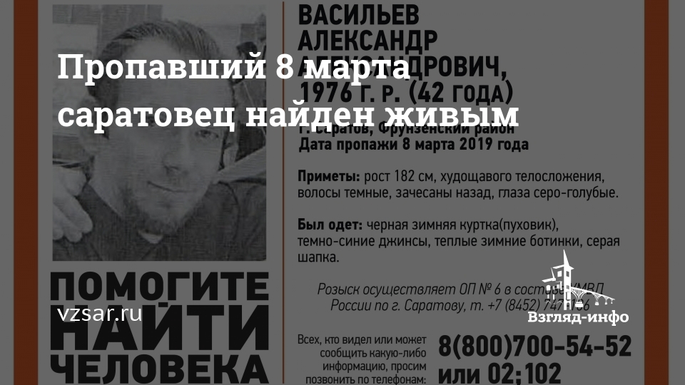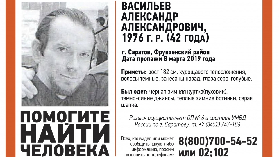 В Саратове обнаружили 42-летнего Александра Васильева. Об этом сообщает поисковый отряд "Лиза Алерт Саратов".