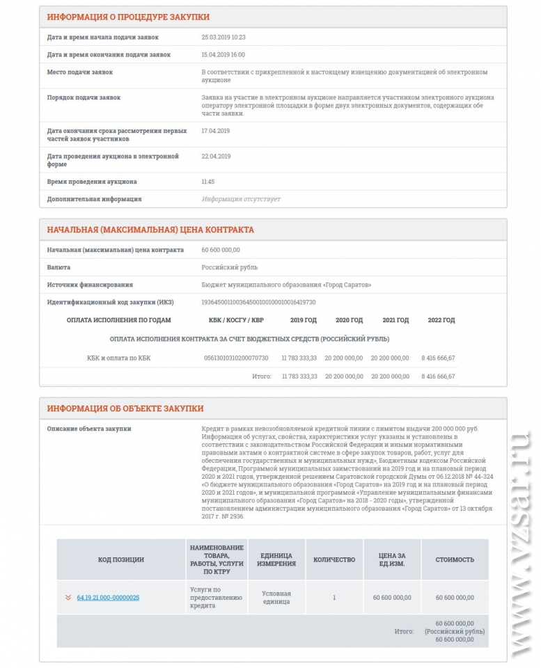 Администрация Саратова объявила электронный аукцион на предоставление кредита для погашения долгов.