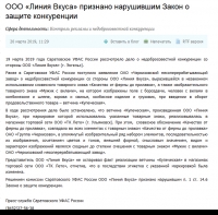 ООО "Линия Вкуса" в Энгельсе Саратовской области признано виновным в нарушении закона о защите конкуренции. Об этом сообщает пресс-служба регионального УФАС.
