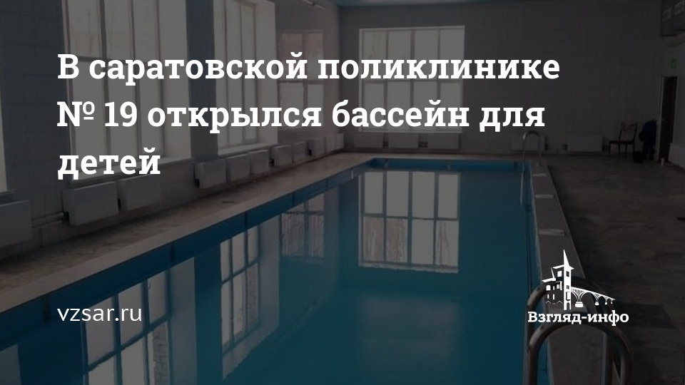 В городской поликлинике № 19 в Ленинском районе Саратова (ул. Мамонтова, 1) после реконструкции открылся бассейн для юных пациентов. Это стало возможным при поддержке социально ответственного бизнеса, сообщает министерство здравоохранения области.