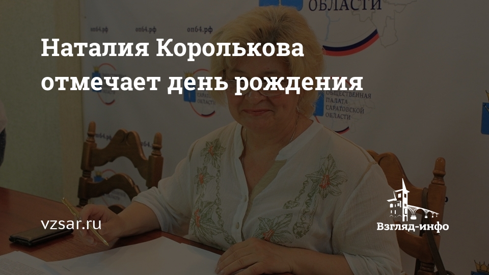 Сегодня председатель регионального "Общества трезвости и здоровья", почетный гражданин Саратовской области, член областной Общественной палаты Наталия Королькова отмечает день рождения.