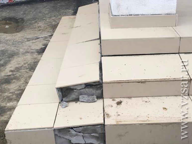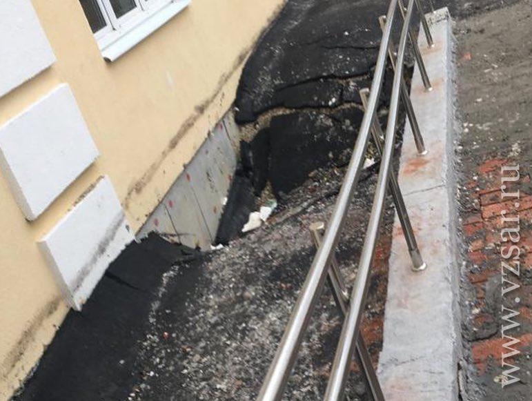 Вокруг новой пристройки к гимназии №89 в Елшанке Саратова появились провалы асфальта.