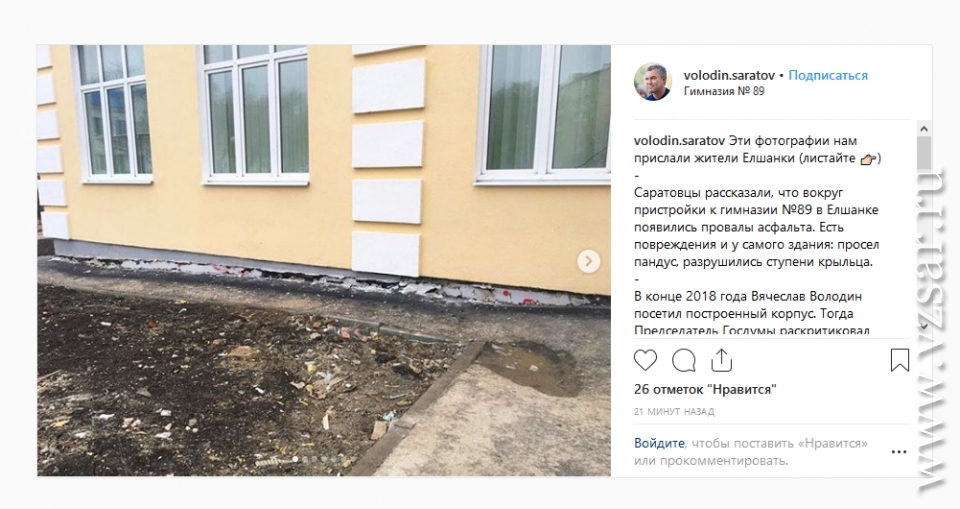 Соответствующий пост появился на странице в Instagram Volodin.Saratov.