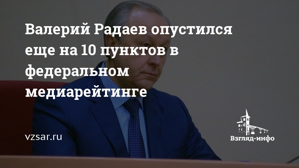 В общероссийском рейтинге по итогам марта наш губернатор оказался на 43-м месте, потеряв 10 пунктов по сравнению с февралем. За месяц средства массовой информации упоминали Радаева 3 696 раз, его медиаиндекс составил 15 650,2.