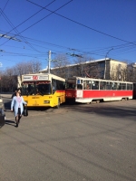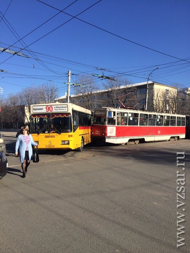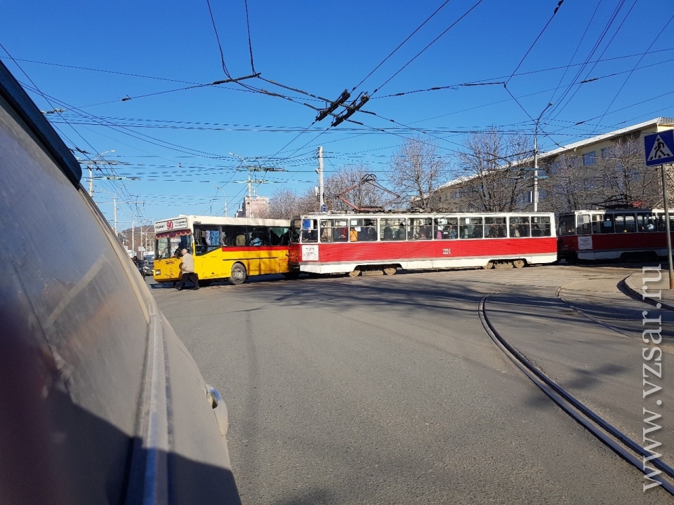 Сегодня утром в центре Саратова столкнулись автобус и трамвай. Об этом сообщает городская администрация.
