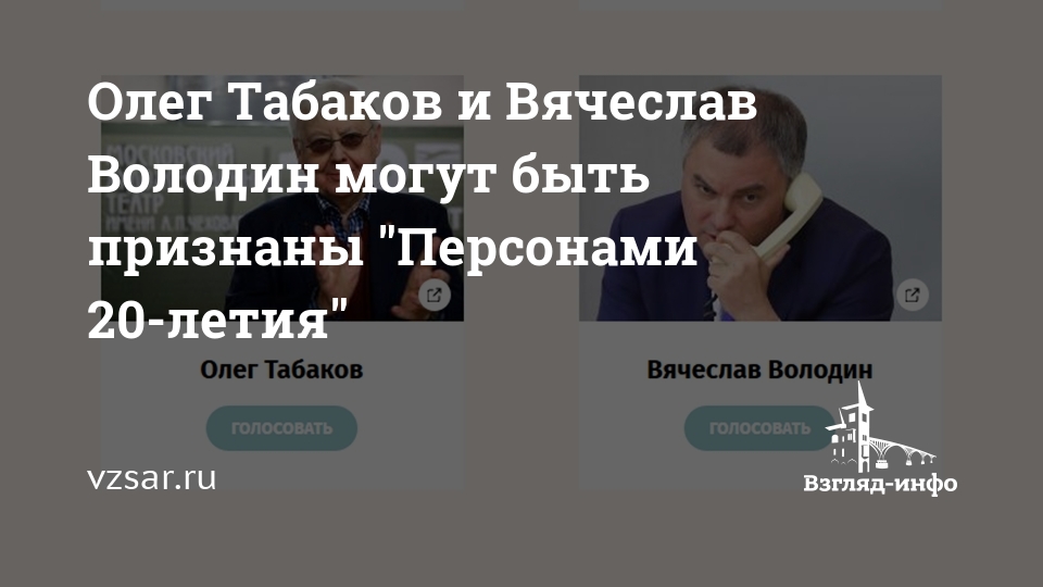 Олег Табаков и Вячеслав Володин могут быть признаны "Персонами 20-летия"