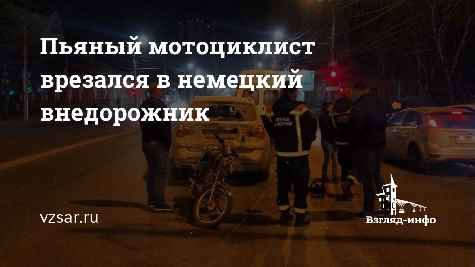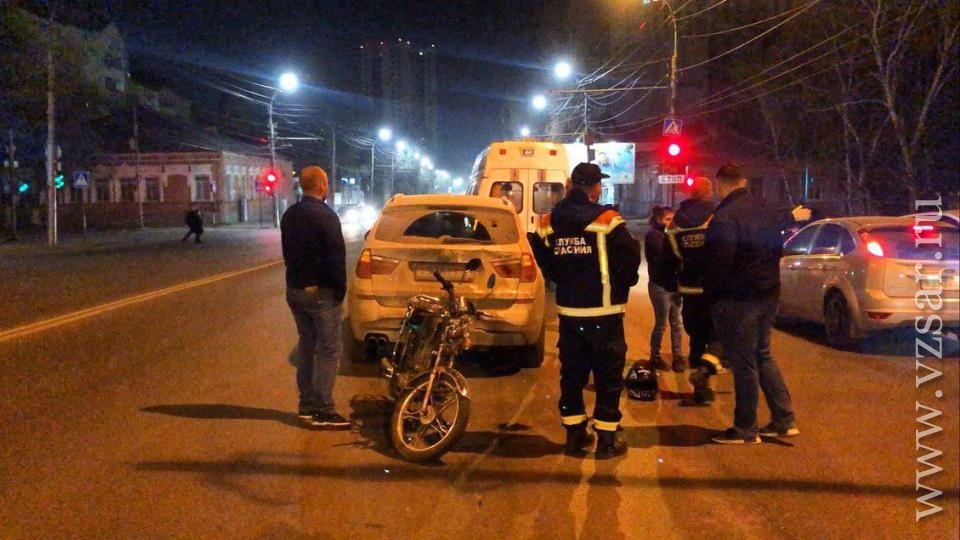 Сегодня ночью в Саратове мотоциклист протаранил внедорожник "БМВ" на улице Чернышевского. Об этом сообщает областная служба спасения.