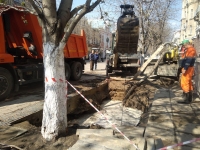 Как свидетельствует корреспондент ИА "Взгляд-инфо", аварийные раскопки ведутся в начале проспекта Кирова, у дома № 6/8.