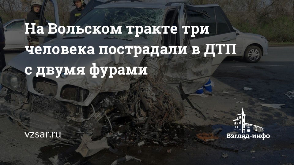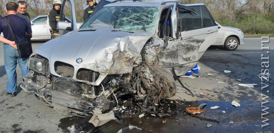 Авария произошла около 9.00 на 5-м километре Вольского тракта. Автомобиль BMW столкнулся с двумя фурами. По предварительной информации, водитель иномарки уснул за рулем и выехал на встречку, где по касательной столкнулся с одним грузовиком, а после "лоб в лоб" – с другим.