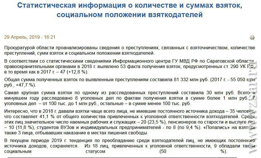 В 2018 году общая сумма выявленных взяток в Саратовской области составила 81,3 млн рублей. Это в полтора раза больше, чем годом раньше, сообщает пресс-служба региональной прокуратуры.