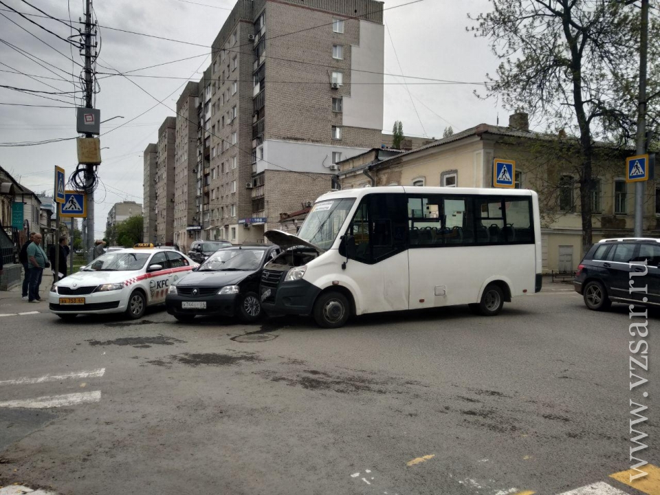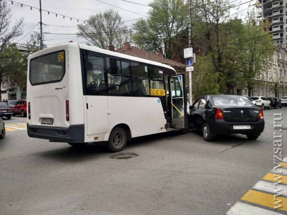 Около часа назад в центре Саратова в столкновении маршрутки и иномарки пострадала женщина.