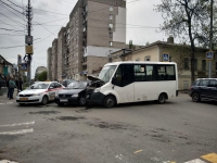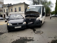 Авария произошла на пересечении Соборной и Первомайской. По свидетельству очевидцев, микроавтобус 52-го маршрута не пропустил легковой "Рено", в результате чего машины столкнулись.