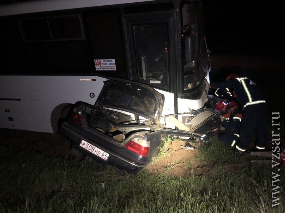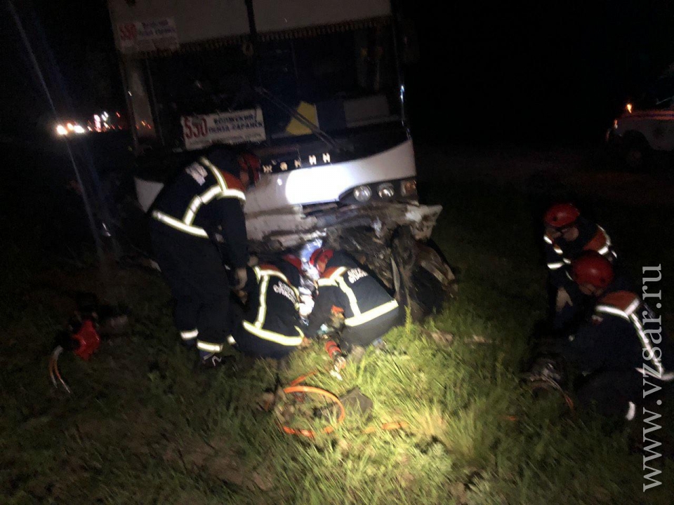 Водитель "Дэу Нексия" – его данные устанавливаются – выехал на встречную полосу и врезался в автобус марки "Волжанин" из Волгоградской области, следовавший по маршруту "Волжский- Саранск". На момент лобового столвновения в автобусе находились 25 человек.