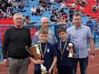 Первый тайм закончился нулевой ничьей. В перерыве первый замминистра молодежной политики и спорта Андрей Абрашин, именитые ветераны саратовского футбола Александр Андреев и Михаил Проскурин наградили команду "Сокол-2007" за победу в турнире "Кубок Волги-2019", состоявшемся в Казани.