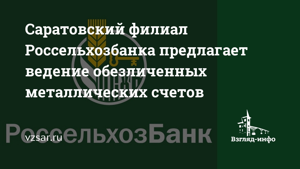 Саратовский филиал Россельхозбанка предлагает ведение обезличенных металлических счетов