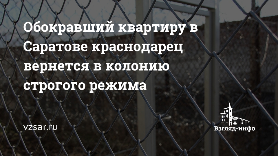 Обокравший квартиру в Саратове краснодарец вернется в колонию строгого режима