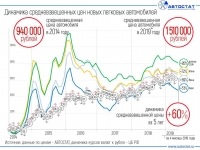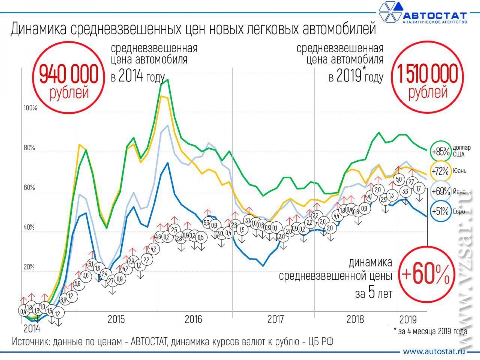Специалисты провели исследование динамики цен, начиная с мая 2014 года. Тогда средняя цена нового легкового автомобиля в России составляла 940 тысяч рублей.
