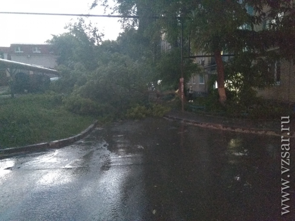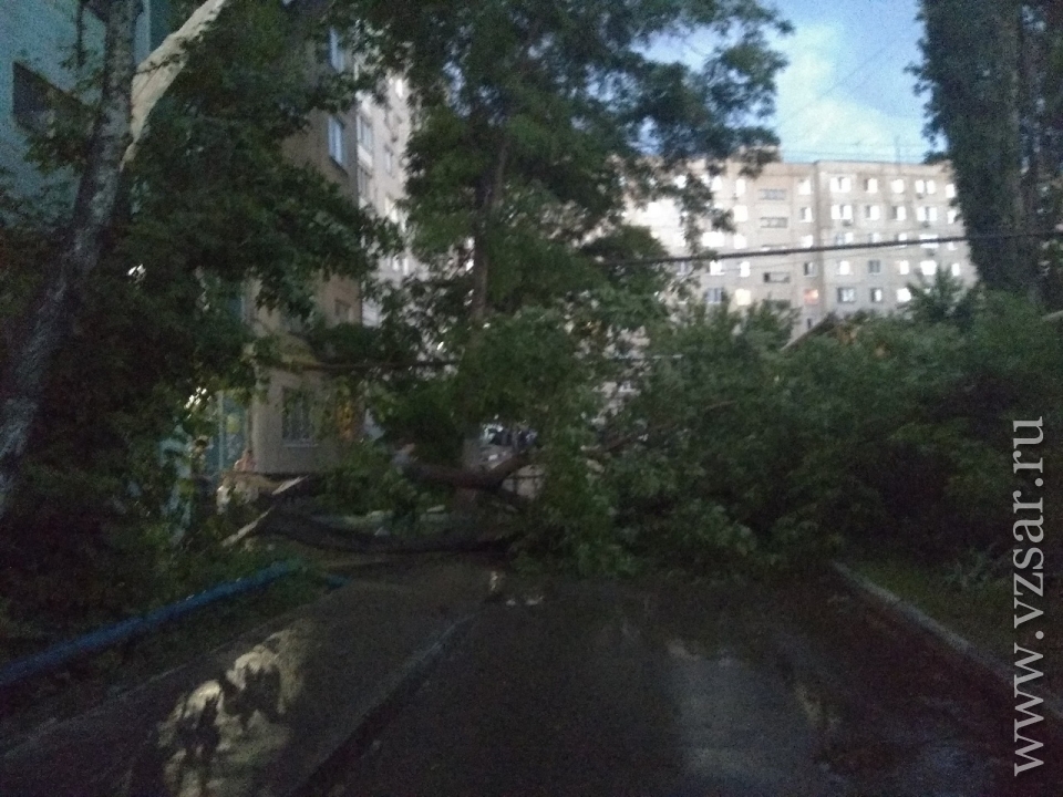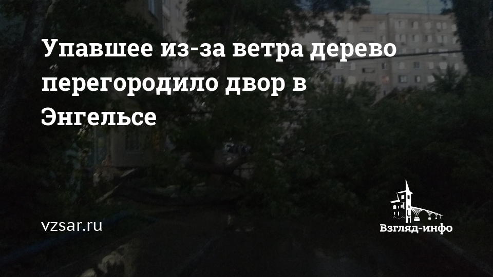 Сегодня утром в Энгельсе Саратовской области в результате сильного ветра упало дерево, перегородив один из дворов. Об этом сообщает очевидец в группе "Энгельс онлайн" социальной сети "ВКонтакте".