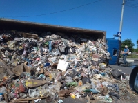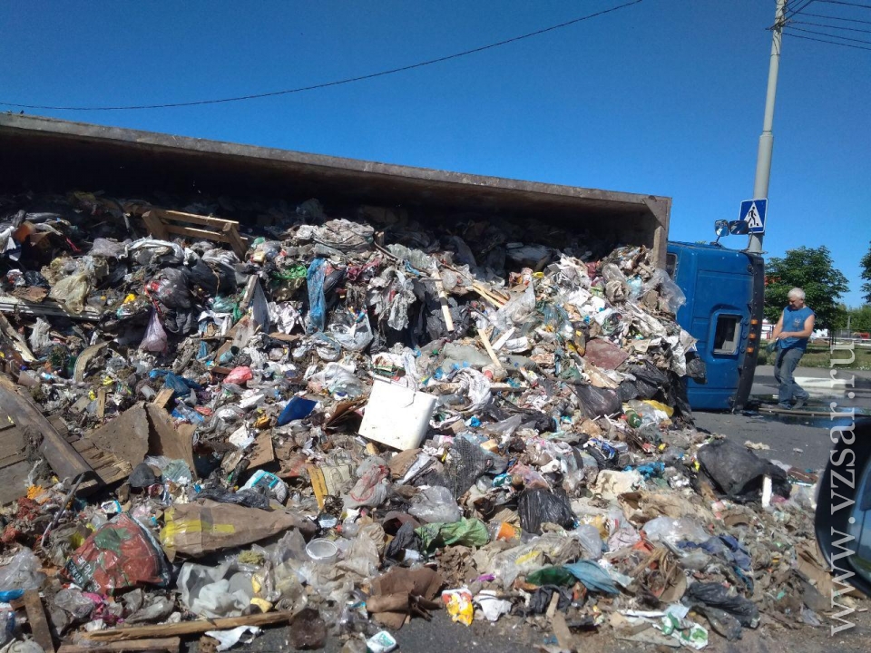 В результате весь мусор высыпался на проезжую часть, а машины оказались в серьезной пробке - от Парка Победы до сельхозрынка.