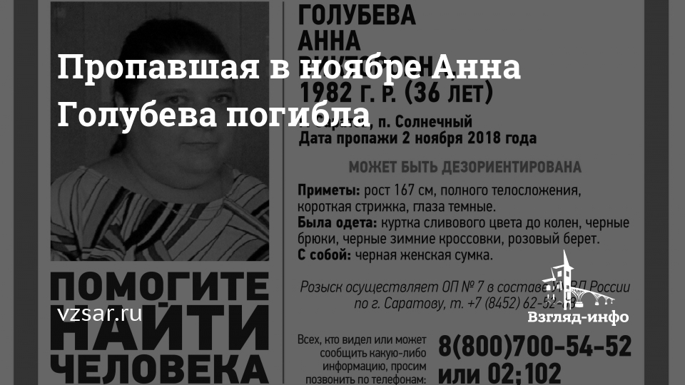 Пропавшая в ноябре Анна Голубева погибла