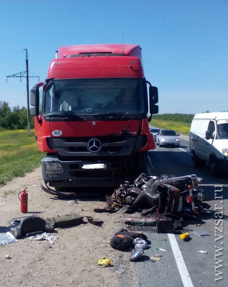 По предварительным данным, авария случилась около 10.00 на 349-м километре автодороги Сызрань – Саратов – Волгоград в Саратовском районе, вблизи поселка Сергиевский. Столкнулись мотоцикл марки Harley-Davidson под управлением 47-летнего водителя и грузовая фура Mercedes.