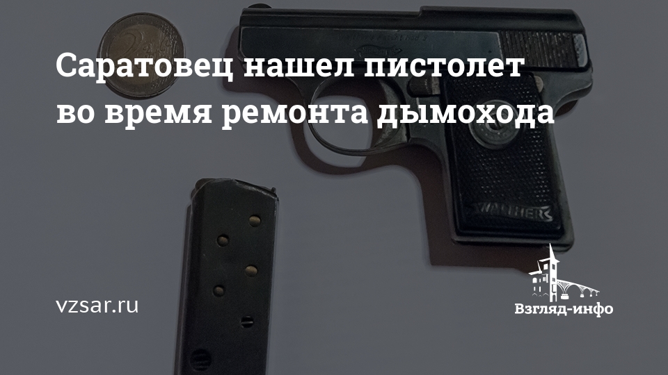 Вчера в 11.15 в полицию обратился 39-летний житель квартиры по улице Радищева. По его словам, час назад он ремонтировал дымоход в ванной комнате, и среди продуктов сгорания обнаружил пистолет "Walther Modell 9" калибра .25 ACP.