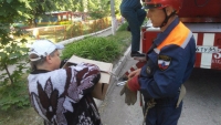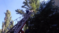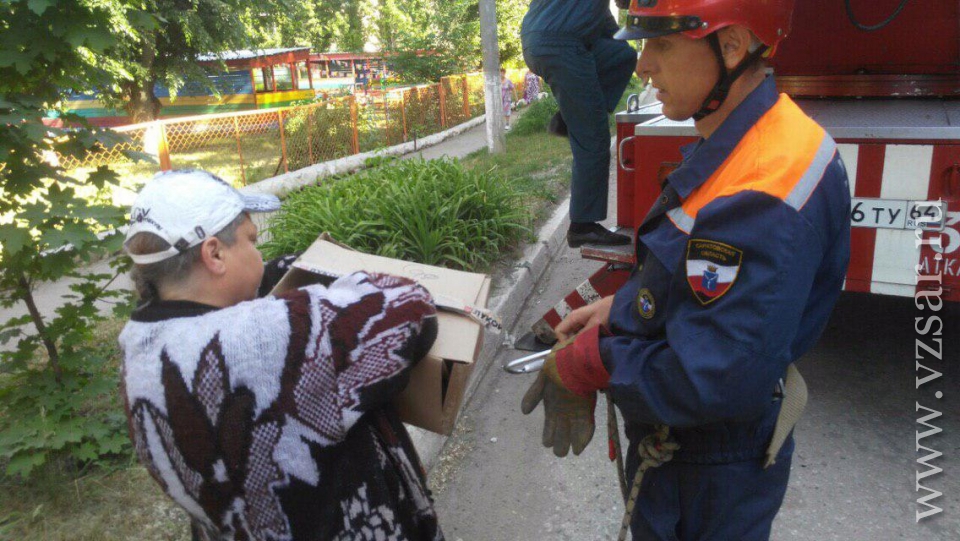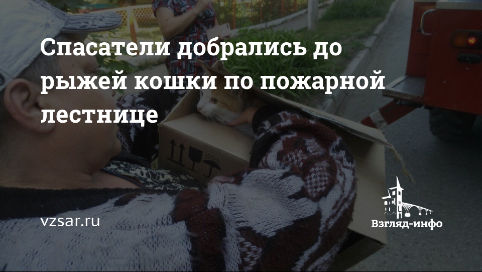 Автолестницу предоставили бойцы пожарной части № 33. Спасатель забрался по лестнице, снял рыжую кошку и передал ее хозяйке.