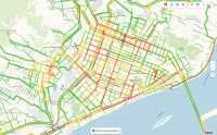 Тяжелая ситуация сложилась на улицах Рахова, Большая Казачья, Большая Затонская и Московская. Некоторые участки окрашены в багровый цвет, машины двигаются со скоростью менее 3-5 километров в час.