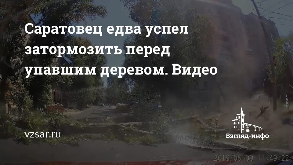 Саратовец едва успел затормозить перед упавшим деревом. Видео