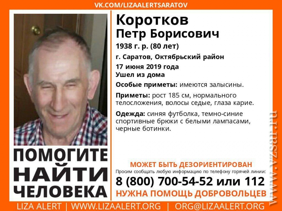 В Октябрьском районе Саратова пропал без вести 80-летний Петр Коротков. Об этом сообщает "Лиза Алерт Саратов".