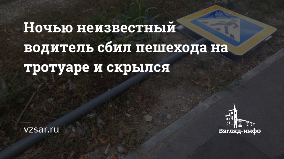 Ночью неизвестный водитель сбил пешехода на тротуаре и скрылся