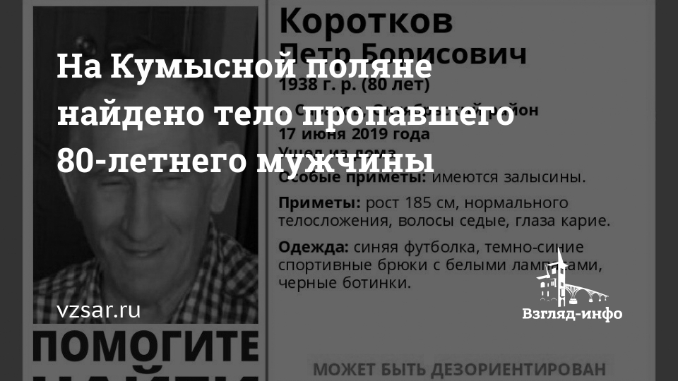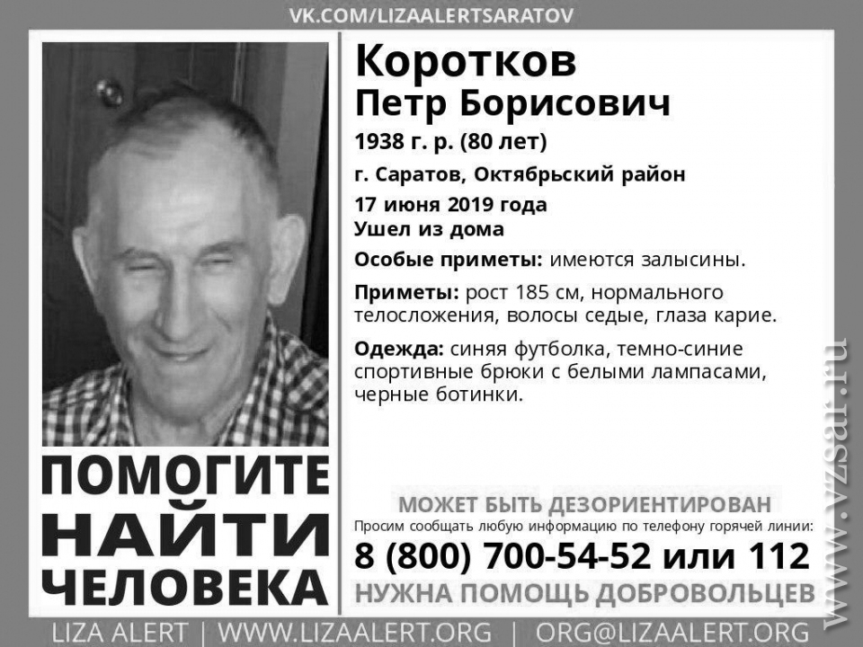 Как сообщили ИА "Взгляд-инфо" в поисковом отряде "Лиза Алерт Саратов" речь идет о 80-летнем Петре Короткове. Ранее сообщалось, что мужчина мог быть дезориентирован.