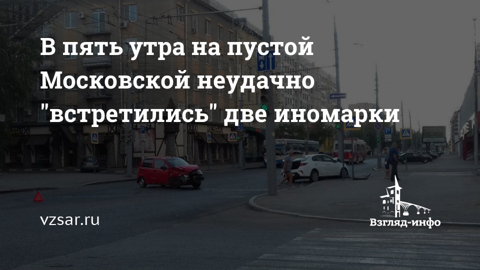 В пять утра на пустой Московской неудачно "встретились" две иномарки