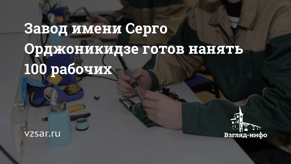 Завод имени Серго Орджоникидзе готов нанять 100 рабочих