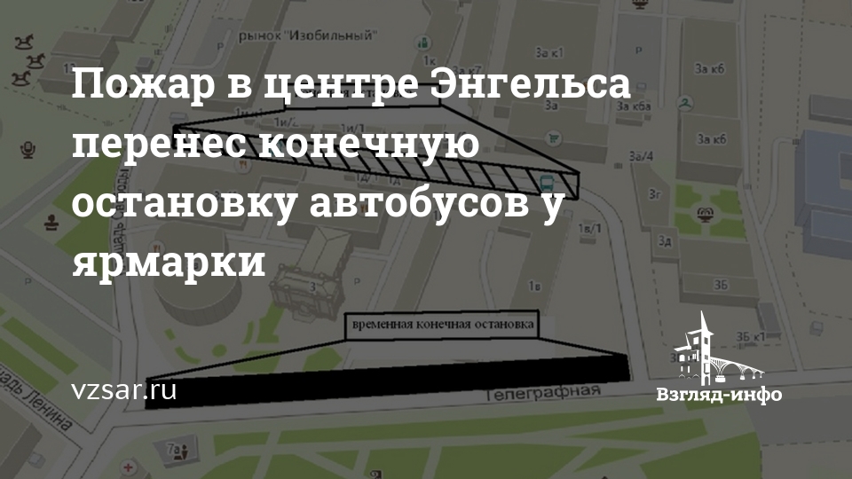 В результате вчерашнего пожара в центре Энгельса перенесена конечная остановка всех маршрутов общественного транспорта, следующих до ярмарки. Об этом сообщает администрация ЭМР.