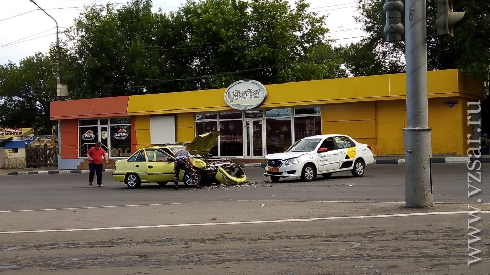 По предварительной информации, на кольце около пивного бара "BierFest" столкнулись автомобили "Datsun" (такси) и "Nexia".