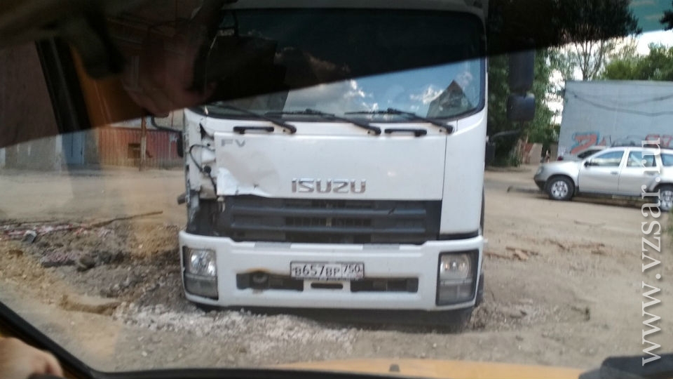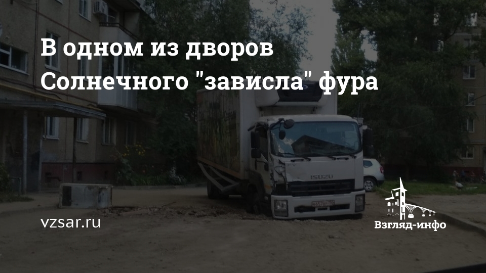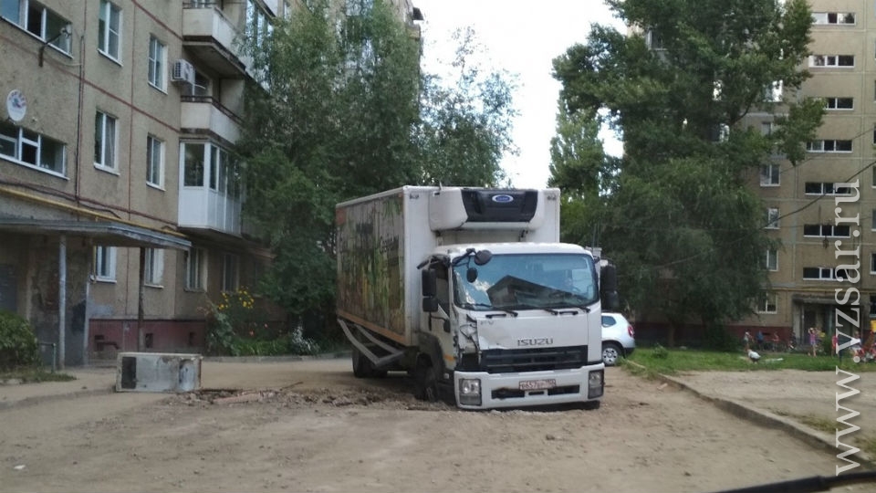 Сегодня в Саратове во дворе на улице Антонова очевидцы сфотографировали застрявшую фуру ISUZU с московскими номерами. Снимок появился в группе "Саратов онлайн".