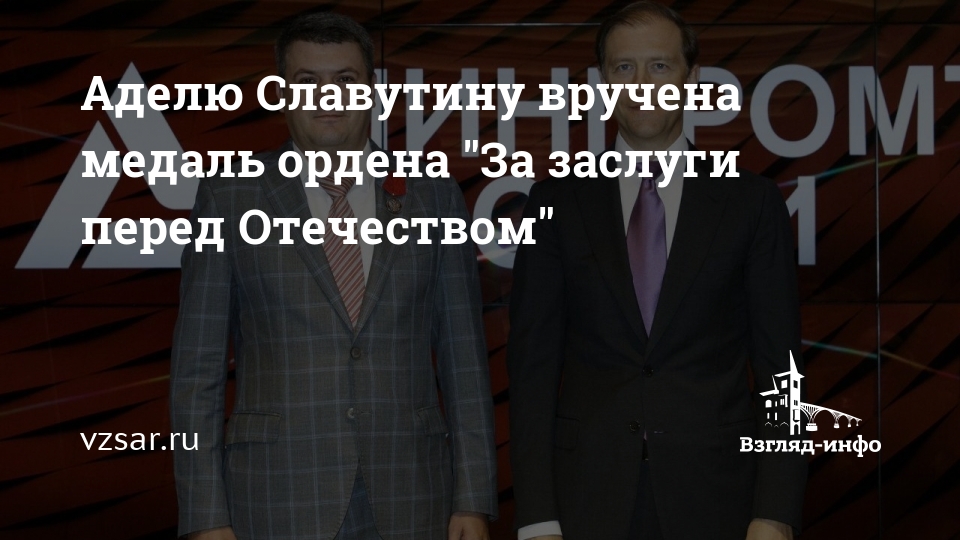 Глава федерального ведомства Денис Мантуров вручил генеральному директору саратовского АО "НПЦ "Алмаз-Фазотрон" Аделю Славутину медаль ордена "За заслуги перед Отечеством" II степени в соответствии с указом президента РФ, сообщает пресс-служба предприятия.