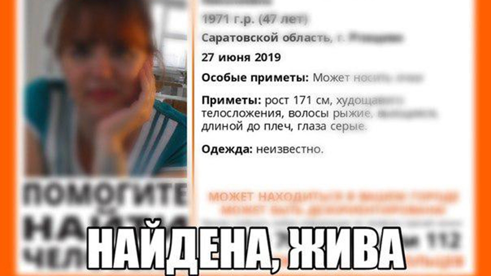 Пропавшая 27 июня жительница Ртищева Ирина Елисеева (Кожевникова, Солоухина) найдена живой, сообщают волонтеры "Лиза Алерт Саратов".