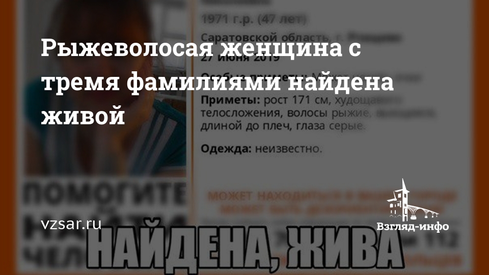 Рыжеволосая женщина с тремя фамилиями найдена живой