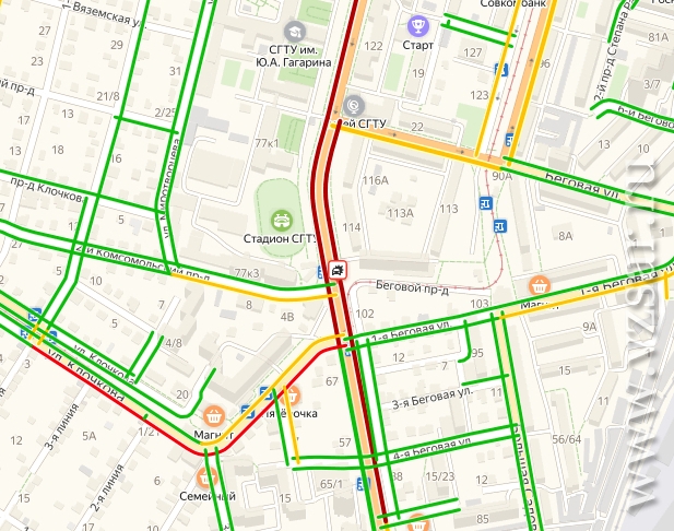 По данным "Яндекс.Пробки", авария серьезно осложнила движение на этом участке.