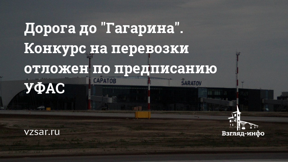 Сегодня в министерстве транспорта и дорожного хозяйства Саратовской области должен был пройти конкурс на право осуществления автобусных перевозок в аэропорт "Гагарин". Однако, из-за предписания регионального УФАС вскрытие конвертов не состоялось. Об этом ИА "Взгляд-инфо" сообщили в пресс-службе областного минтранса.