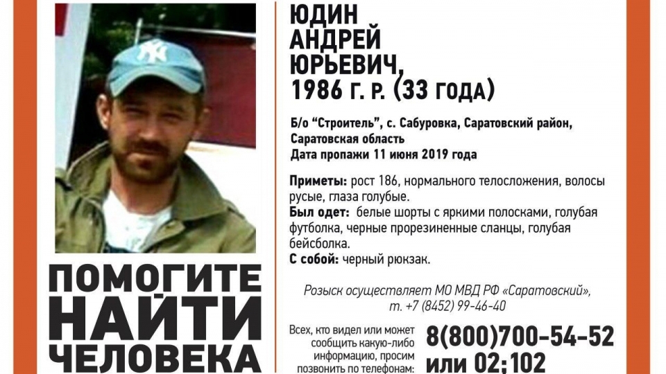 В Саратовском районе найден живым 33-летний Андрей Юдин. Сегодня об этом сообщает поисковый отряд "Лиза Алерт Саратов".