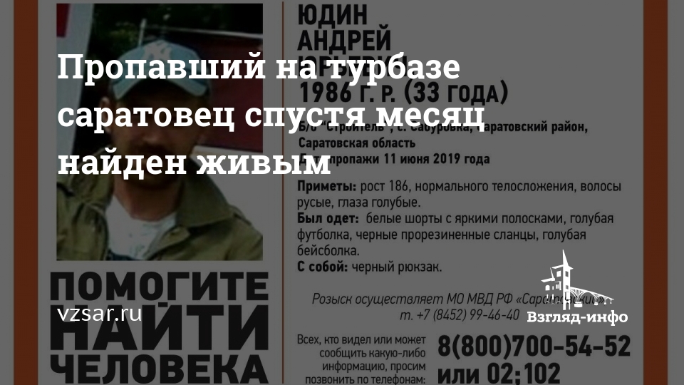 Пропавший на турбазе саратовец спустя месяц найден живым