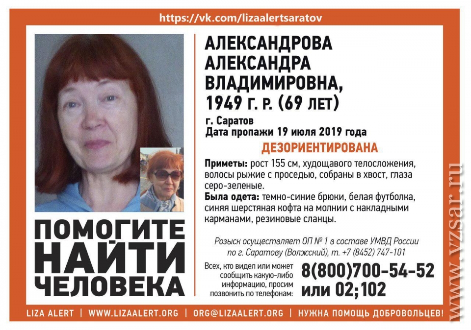 В Саратове пропала без вести 69-летняя Александра Александрова. Об этом сообщает поисковый отряд "Лиза Алерт Саратов".