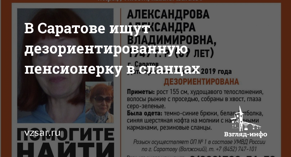 Розыск осуществляет отдел полиции № 1 в составе УМВД России по Волжскому району. Всех, кто видел пропавшую Александру Александрову или может сообщить какую-либо информацию о ней, просят звонить по телефонам 8(8452)747-101, 8(800)700-54-52, 02 и 102.