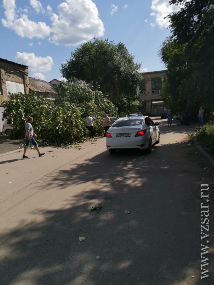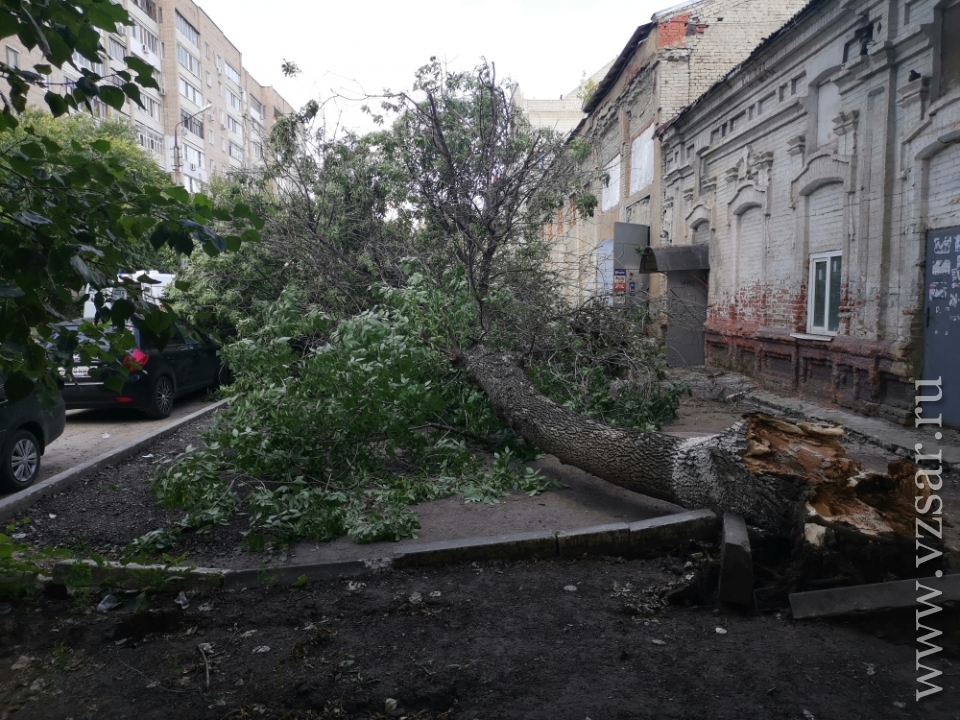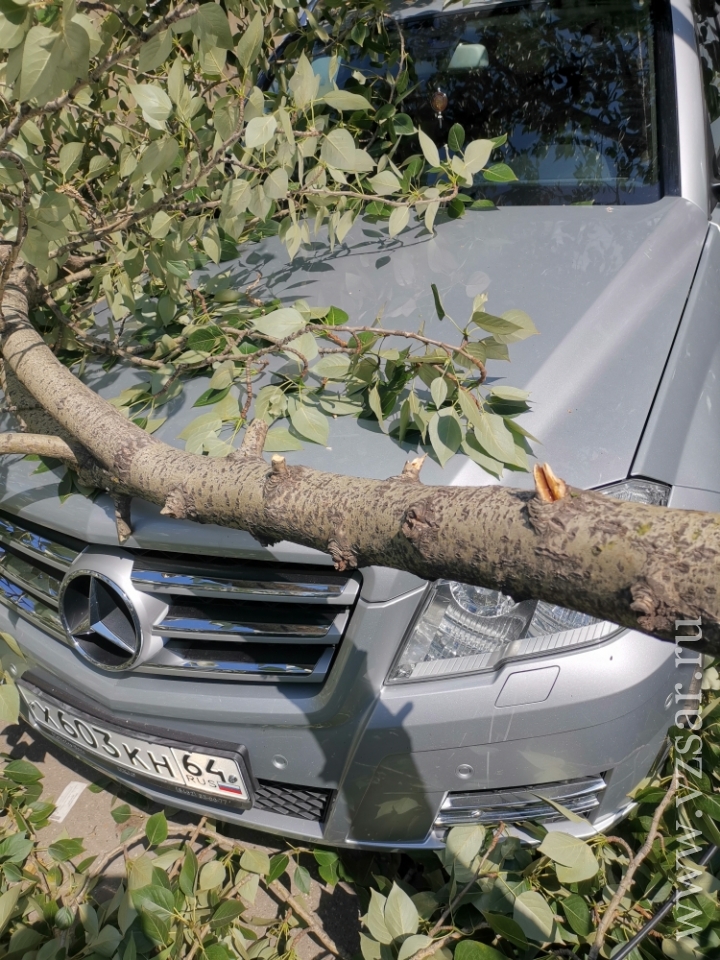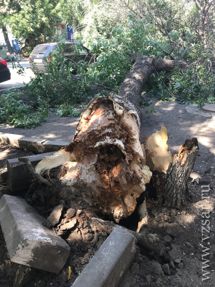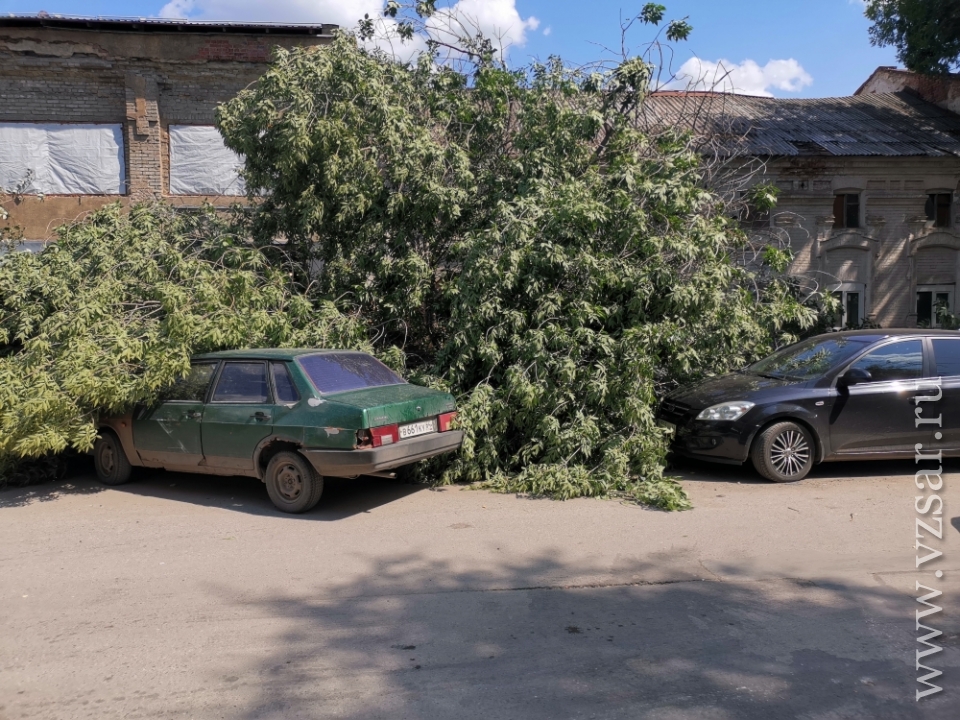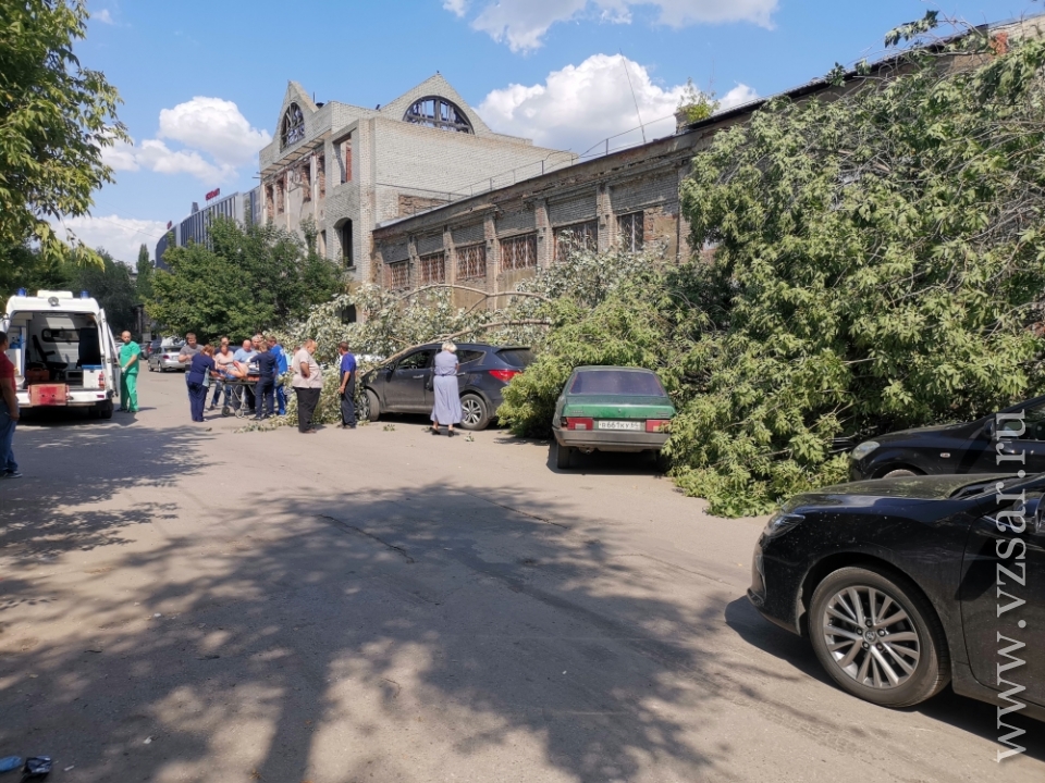 Рухнувшее в центре Саратова дерево травмировало человека и повредило авто