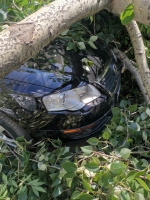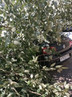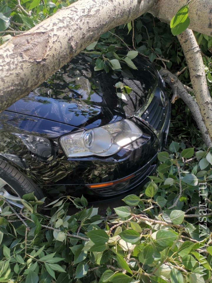Также большое дерево накрыло листвой и ветками несколько машин.