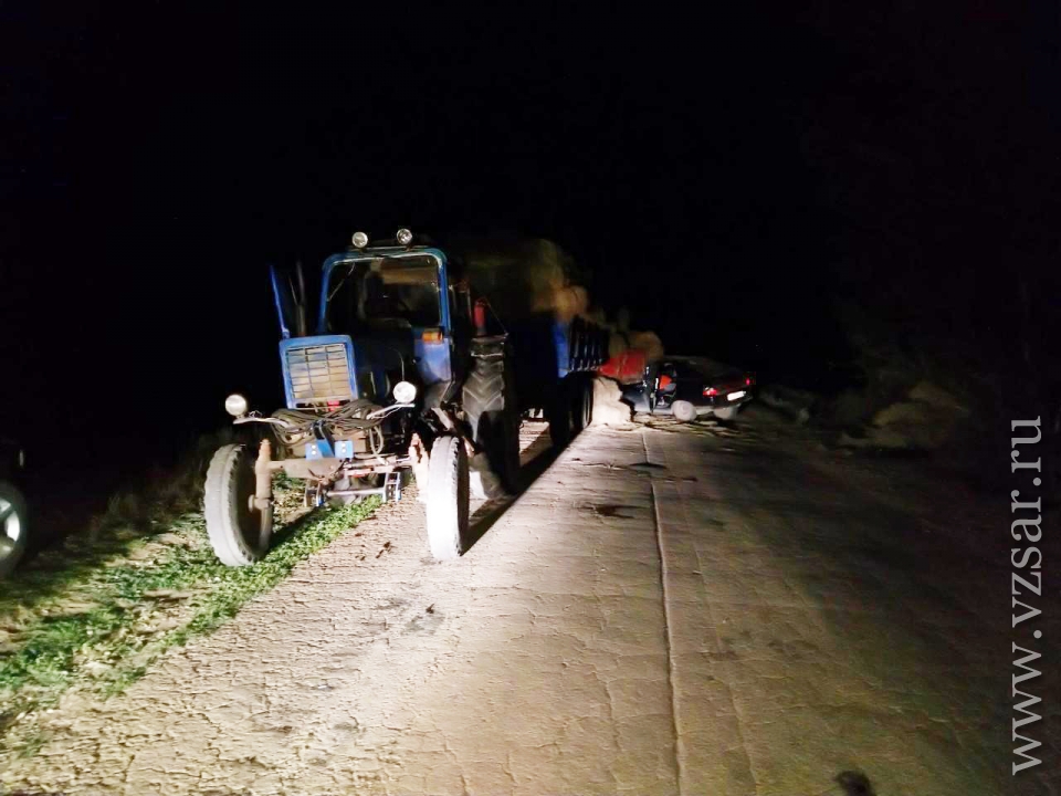 В 22.50 недалеко от села Натальин Яр легковой автомобиль протаранил тракторную тележку.